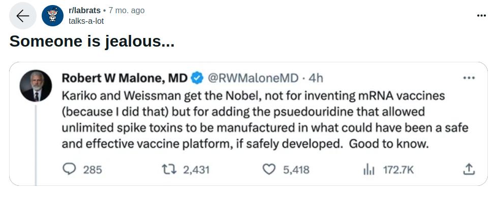 This makes no sense whatsoever, and suggests one of two things: Robert Malone has a recklessly self-destructive streak, or is lying.