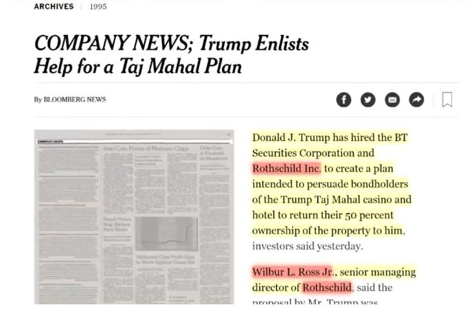 When asked why they bailed him out, Rothschild's man-on-the-case, Wilbur Ross Jr, explained “The Trump name is still very much an asset.”