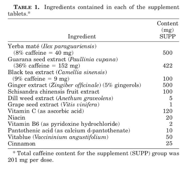 So the study was not examining the effect of caffeine in isolation, but as part of a multi-nutrient supplement, which introduces extra and potentially confounding variables.