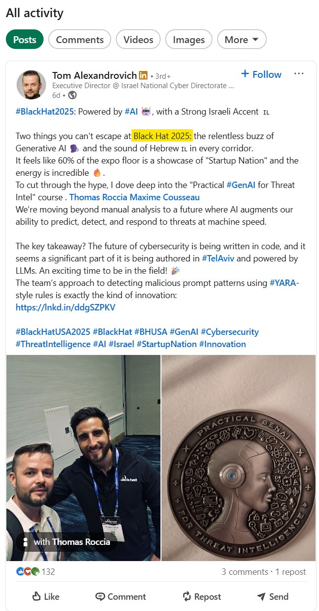 He added, “The key takeaway? The future of cybersecurity is being written in code, and it seems a significant part of it is being authored in #TelAviv and powered by LLMs. An exciting time to be in the field!”