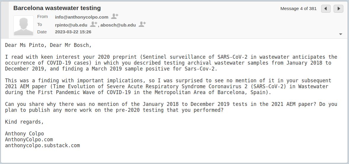 When Bosch and his colleagues finally had their paper published in peer-reviewed form in April 2021, I was dismayed to see no mention whatsoever of their pre-2020 positive test results.