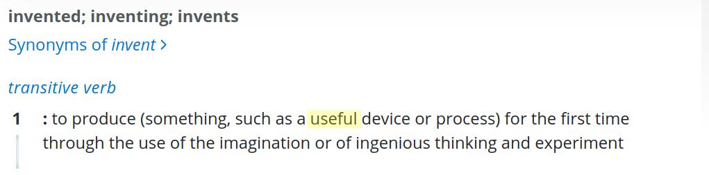 Oh, and let’s see how Merriam-Webster defines “invent”: