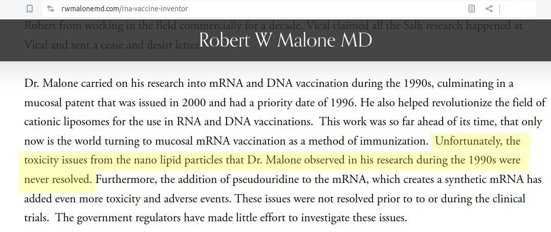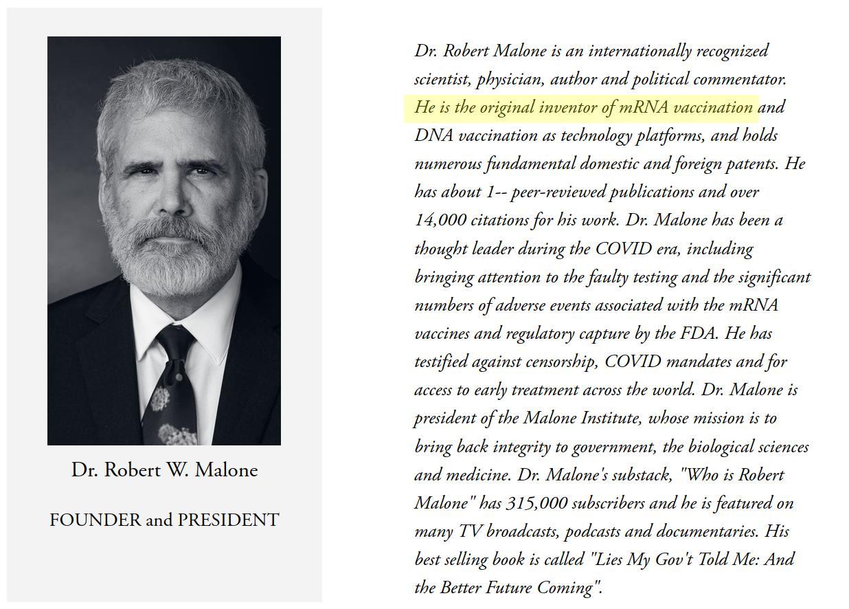 Malone’s claim that he invented the mRNA (non)vaccines has been the subject of much debate and numerous deep dives.