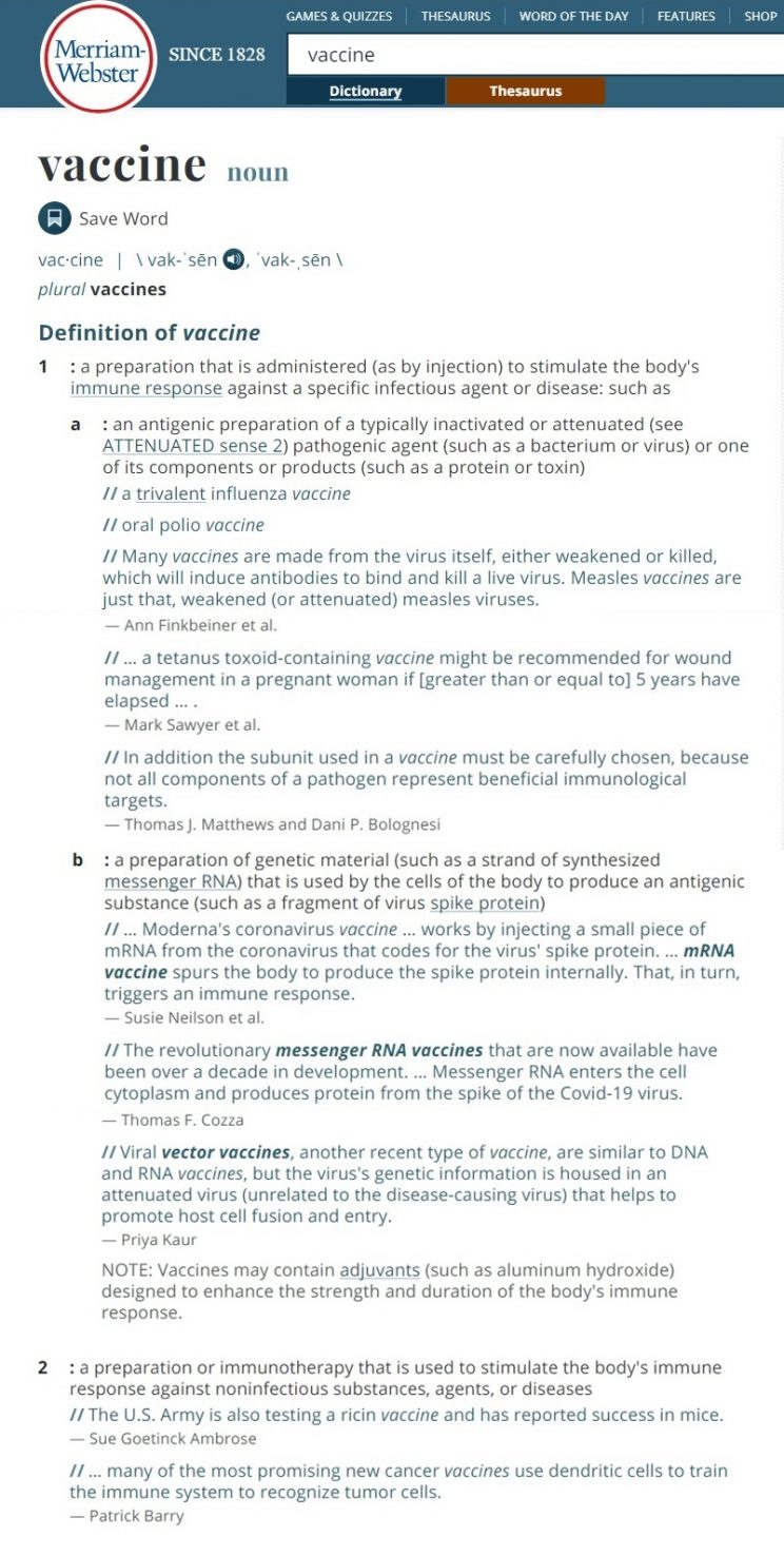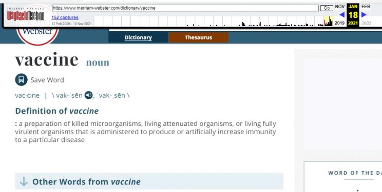Check out Merriam-Webster’s definition of "vaccine" as of January 18, 2021: