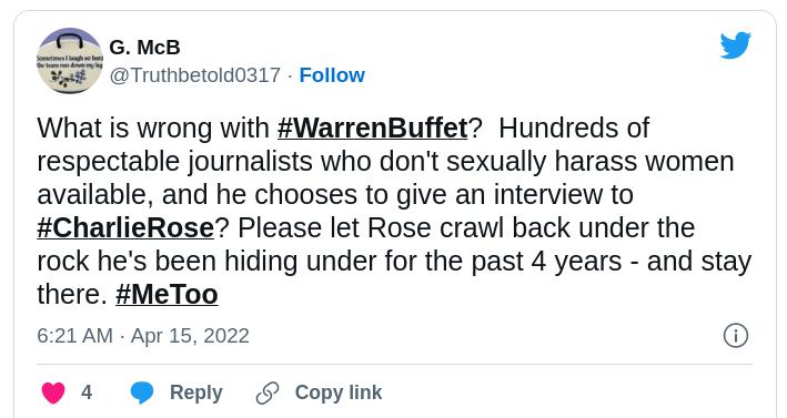 Other powerful men who were outed and lost their jobs are already making comebacks, including Bill O'Reilly, Al Franken, Matt Lauer, Louis C.K. and Charlie Rose. The latter recently interviewed Warren Buffet, the famed investor and one of the world's richest men. Buffet's willingness to sit down with the likes of Rose is proof that money can buy just about everything except decency.