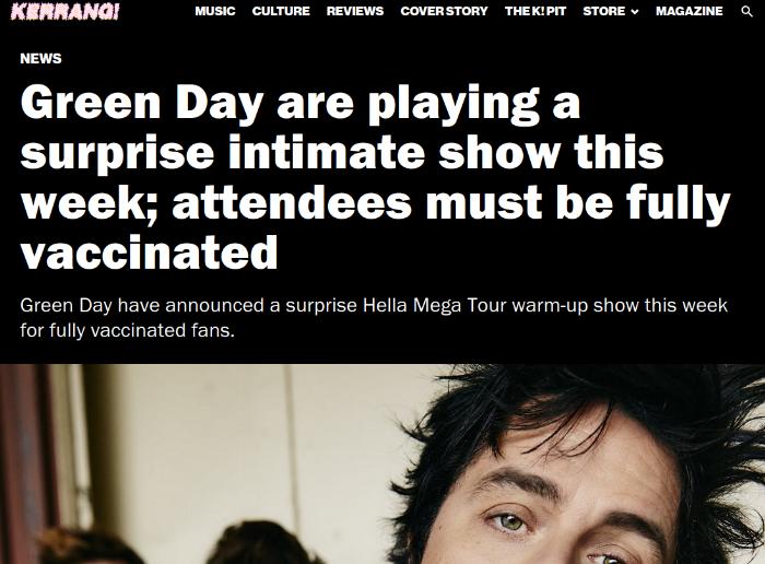 Turns out being an idiot who blindly believes what the corporate media tells you is A-okay with Green Day after all. Here they are, in July 2021, putting on a show exclusively for American Idiots gullible enough to get injected with highly toxic drugs made by corporate criminals as part of a fake ‘pandemic’ scam that could not have succeeded without the help of the globalist-owned corporate media: