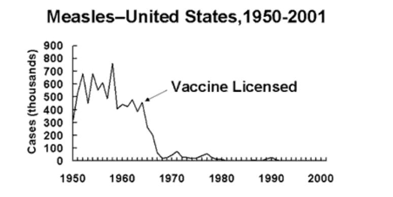 At first glance, the graph seems compelling. The measles vaccine was licensed, and presto, a sudden and immediate drop in measles incidence occurs!