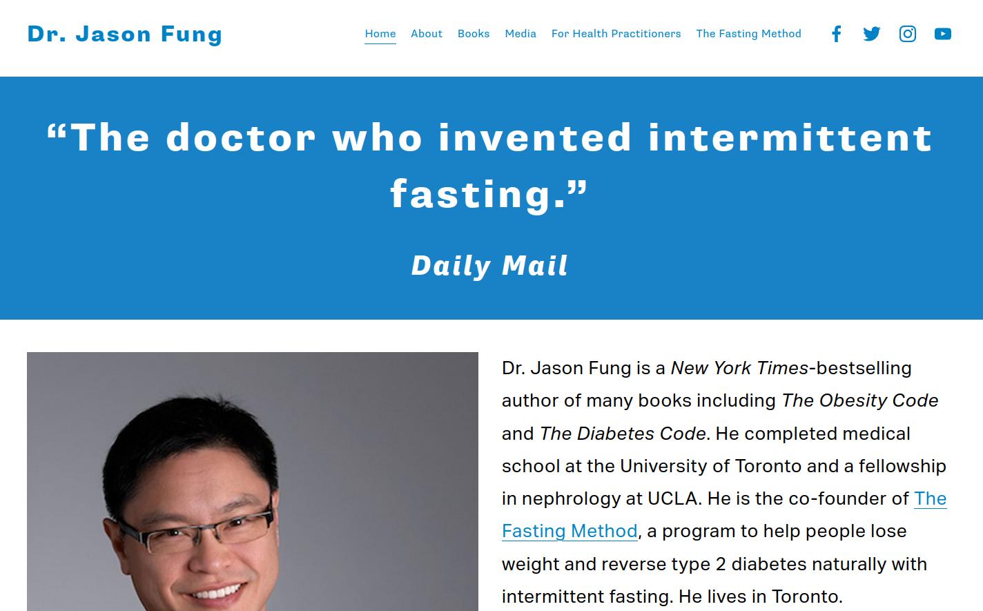 According to his website, Fung "is a Toronto-based nephrologist (kidney specialist) and a world leading expert in intermittent fasting and low-carb diets."