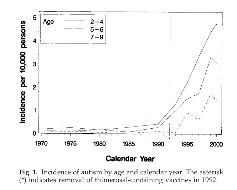 Surprise, surprise, they found “discontinuation of thimerosal-containing vaccines in Denmark in 1992 was followed by an increase in the incidence of autism.” (Bold emphasis added).