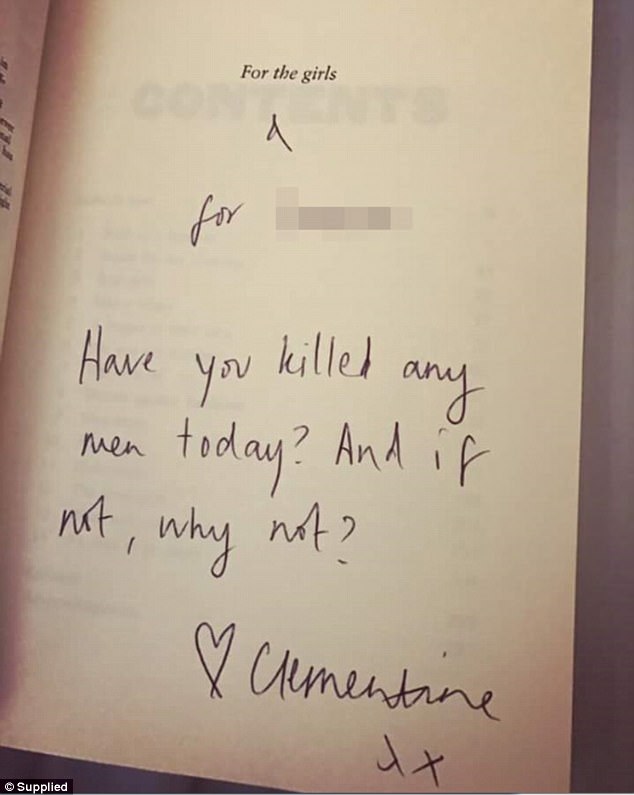 At a 2017 book signing, she wrote a note to a fan inside her newly-released Fight Like a Girl that asked “Have you killed any men today? And if not, why not?”