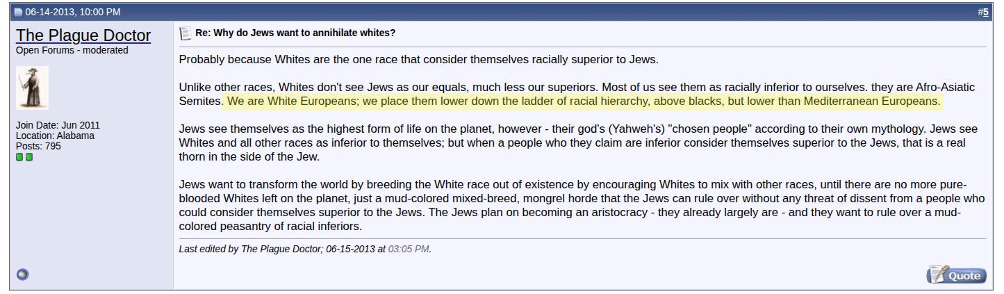 By the way, most Jews are actually white Europeans, but don’t tell that to the white supremacists. It would break their twisted little hearts.