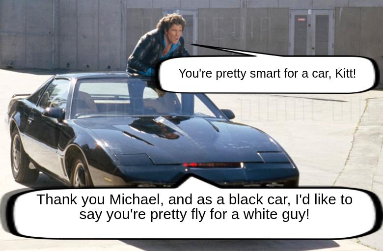 The first is that I'm Caucasian, which officially makes me white. However, my heritage is Italian and my actual skin tone is olive, which means during the racist Australia of the 1970s and 1980s, I may as well have had the same skin color as Kitt from Knight Rider.
